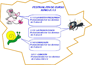 El acto comenzará a las 9:00 horas y rogamos LA MÁXIMA puntualidad. Después de la función iremos a clase dónde podrán recoger la bolsa con el material y los informes del trimestre.